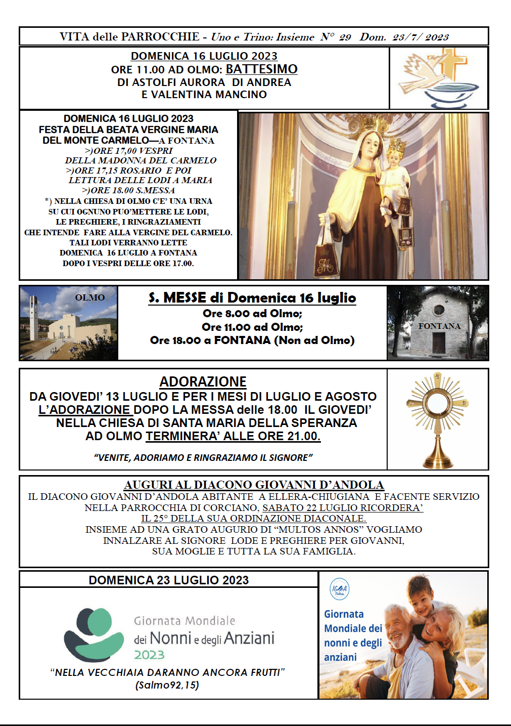 SETTIMANALE UNITARIO-UNO E TRINO:INSIEME-23 LUGLIO 2023